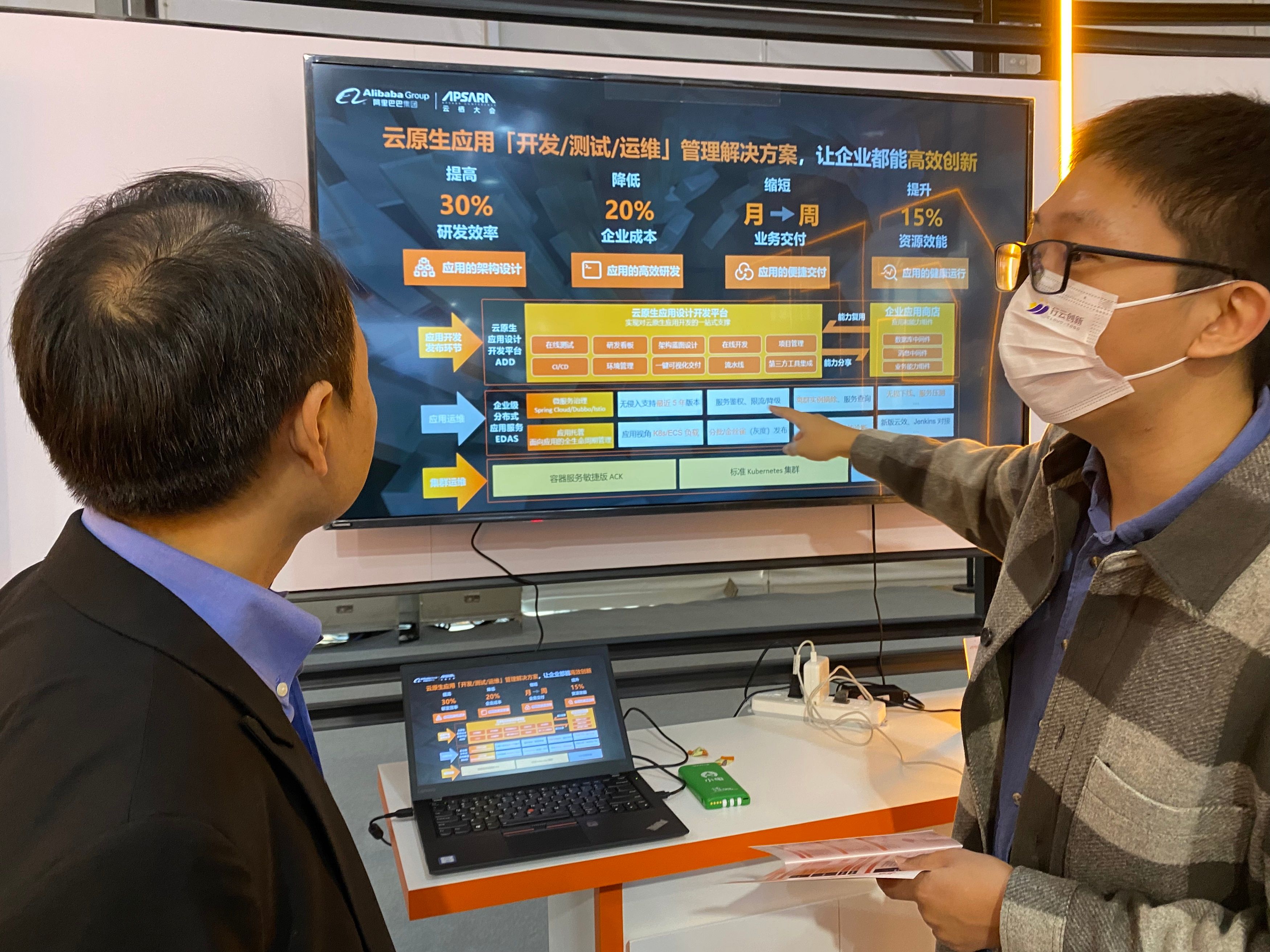 jiuyou.com创新云栖大会上重点展示了打通阿里云、高度融合阿里云EDAS产品的一站式云原生研发平台CloudOS。CloudOS包含云原生应用架构设计、在线协同编码开发、基于云原生的API管理和接口测试、多云交付和应用调度、灰度发布、流水线、应用运维、服务 治理、多容器集群管理、云边一体化业务交付等能力。目标是提升应用架构敏捷度,大大加快软件开发迭代速度,提高IT资源的弹性和利用率,帮助企业客户加速实现业务价值。